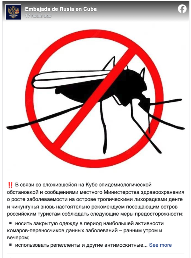 Catorce turistas rusos contrajeron chikungunya y dengue durante su viaje a Cuba. La embajada rusa pide extremar precauciones ante un brote que ya deja 33 muertes, incluidos menores. Turismo ruso cae 36 %