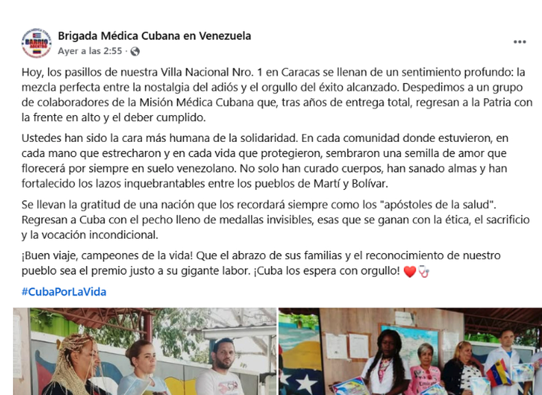 Aunque los comunicados oficiales hablan de descanso y rotación programada, el regreso de brigadas médicas ocurre en un momento de fuerte presión política tras los cambios en el poder en Caracas y la creciente exigencia de Estados Unidos de reducir la presencia de personal extranjero, incluidos los médicos cubanos.
