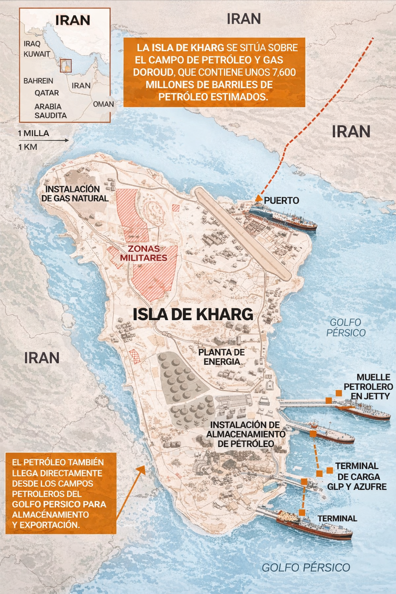 Este enclave concentra cerca del 90% de las exportaciones de petróleo de Irán, lo que lo convierte en un objetivo militar de alto valor en medio de la escalada bélica en la región.