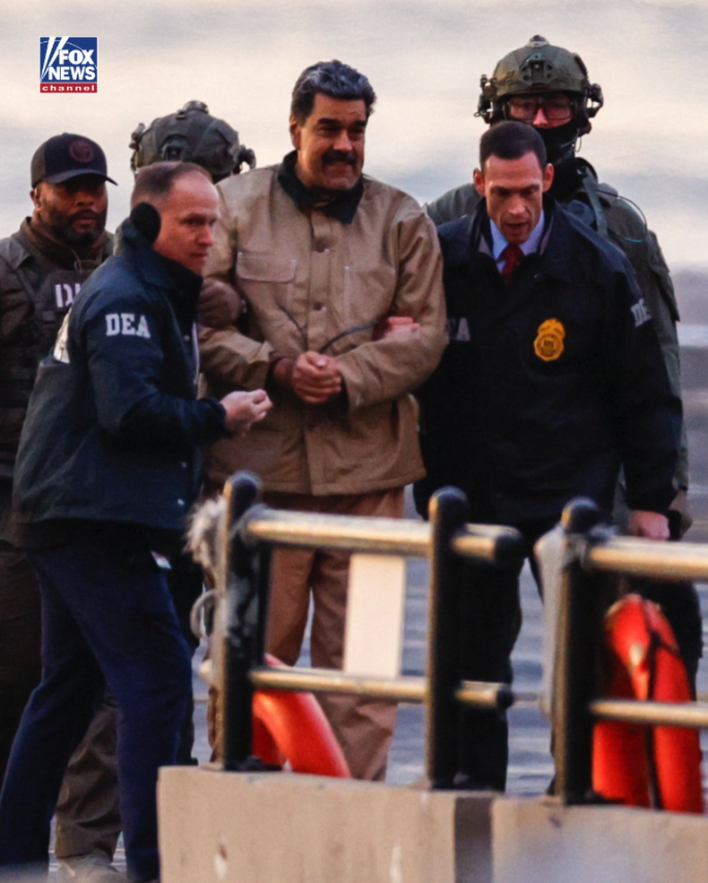 Imágenes difundidas por medios locales muestran a Maduro esposado, descendiendo de un helicóptero y siendo trasladado en un camión blindado hasta el edificio judicial, bajo un fuerte dispositivo de seguridad federal.
