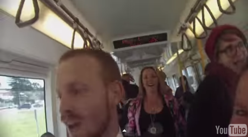 Peter Sharp comienza un baile en un tren en Perth, Australia para demostrar que si él puede empezar una fiesta en un tren con 20 desconocidos, nosotros podemos empezar una conversación.