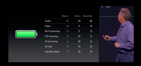 En modo 3G, la autonomía de los iPhone 6 llegará a las 14 horas. El modelo Plus alcanzará las 24 horas, dijo Apple.