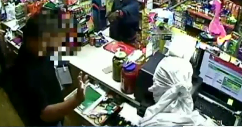El video de seguridad muestra claramente a los sospechosos agrupando a los clientes del establecimiento en un pasillo para evitar que llamaran a la policía, mientras otro se dirigía a exigir el dinero en efectivo.